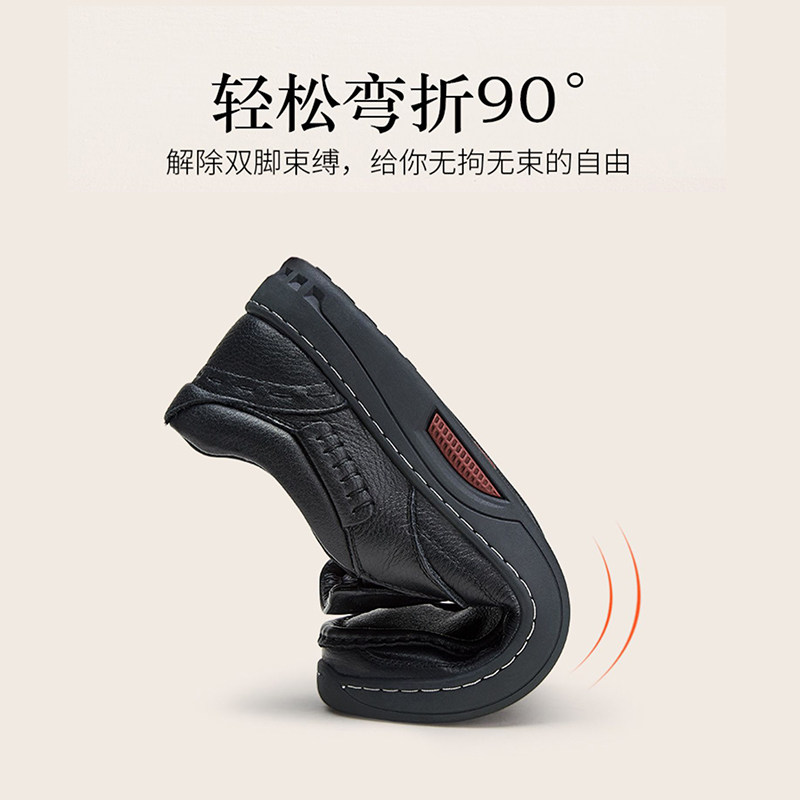 老人头男鞋冬季皮鞋男士中年商务休闲皮鞋真皮加绒软底舒适爸爸鞋
