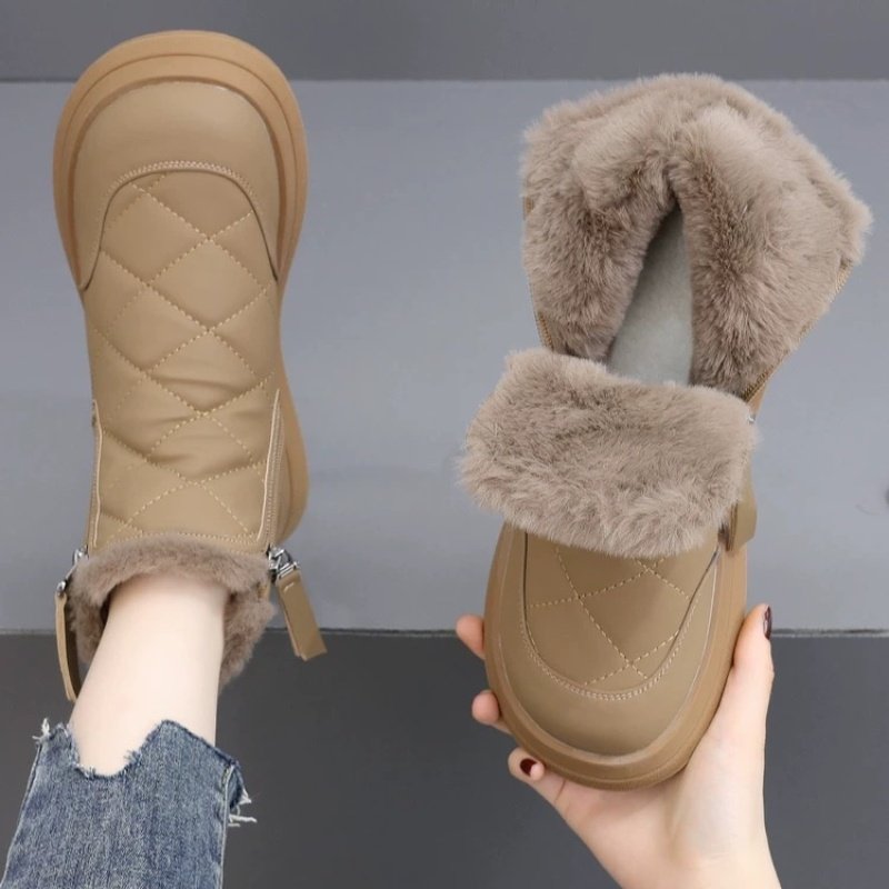 15HZ的鲸厚底雪地靴女2025新款防滑棉鞋女一脚蹬冬季雪地棉女鞋子