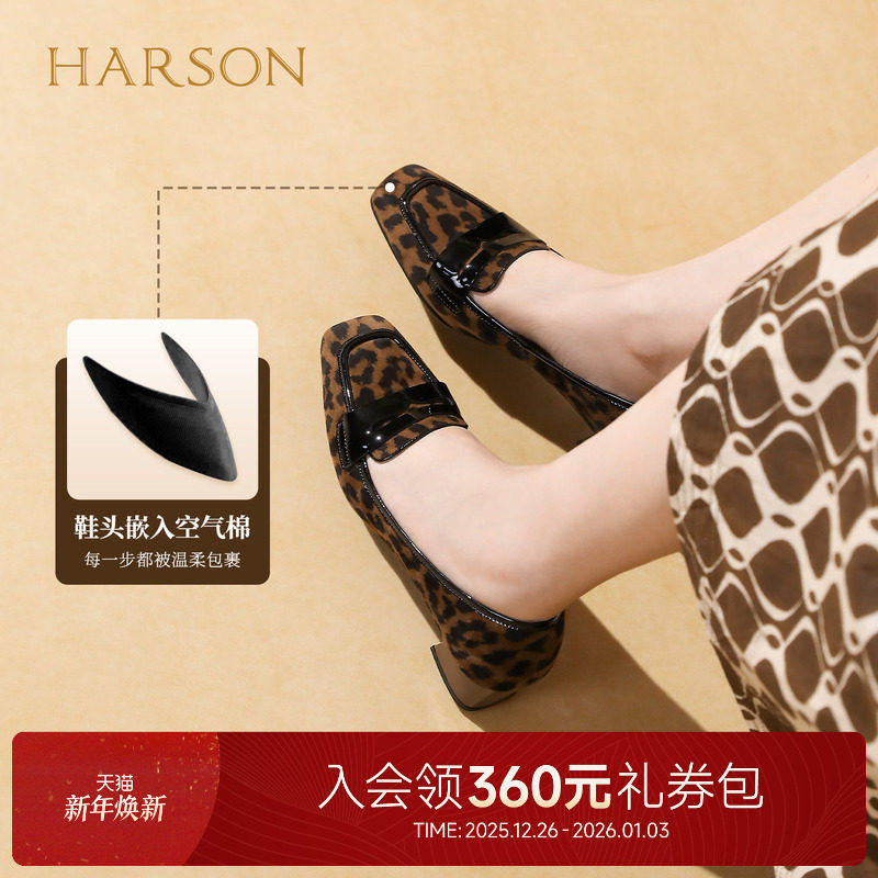 哈森豹纹浅口单鞋中粗跟优雅气质百搭法式方头女鞋2025秋HL257120