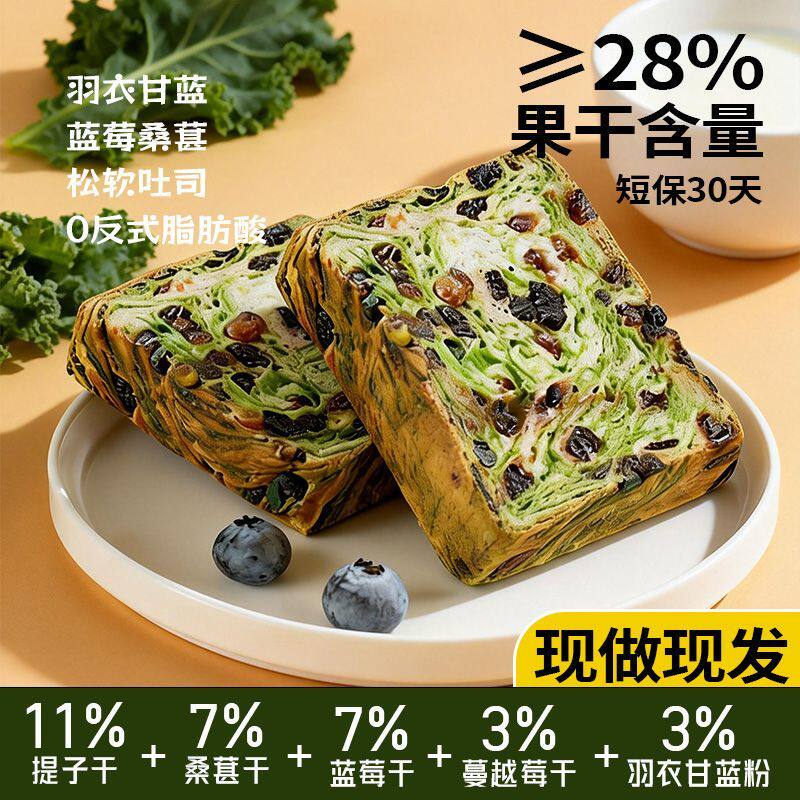 羽衣甘蓝奇亚籽全麦厚切吐司面包无糖0早餐代餐点心饱腹食品美味