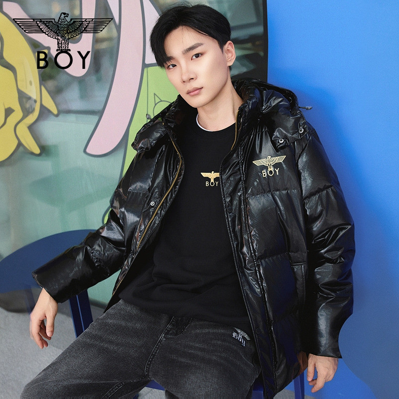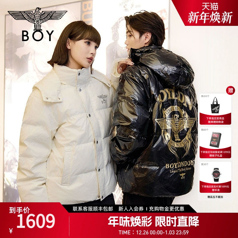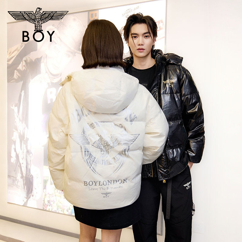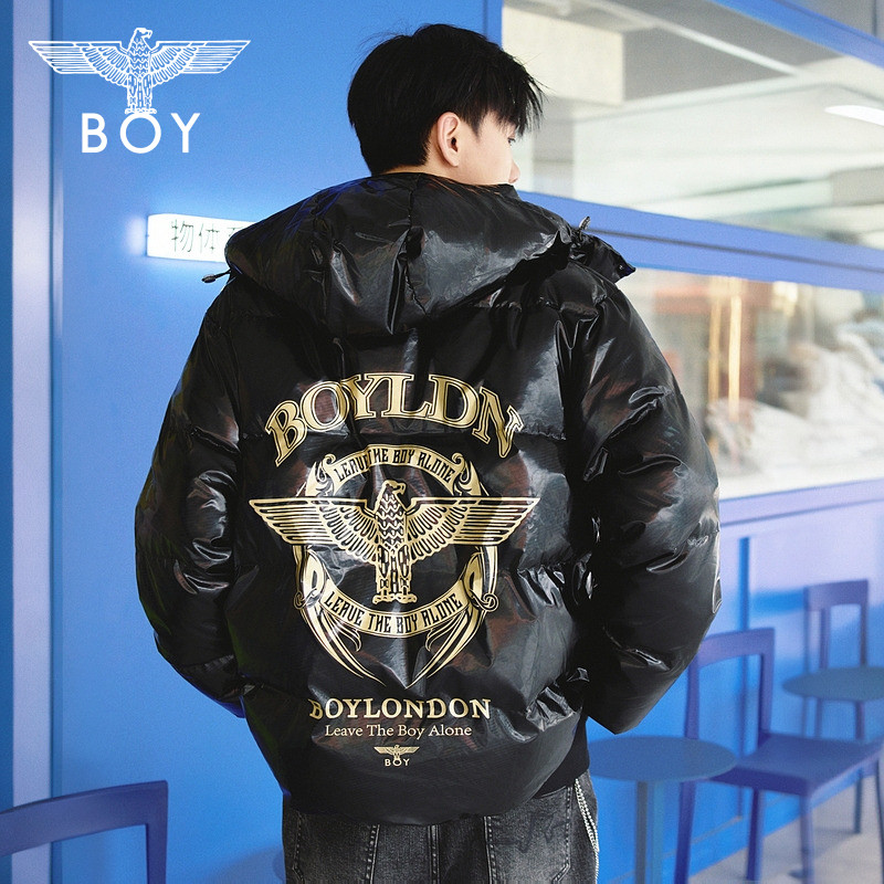BOYLONDON冬男女同款炫彩反光保暖潮牌短款连帽羽绒服外套N28901