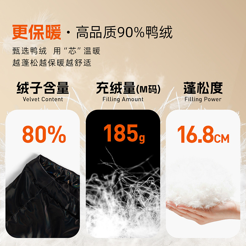 骆驼男装秋冬黑色加厚保暖鸭绒短款面包服男女同款防水羽绒服外套