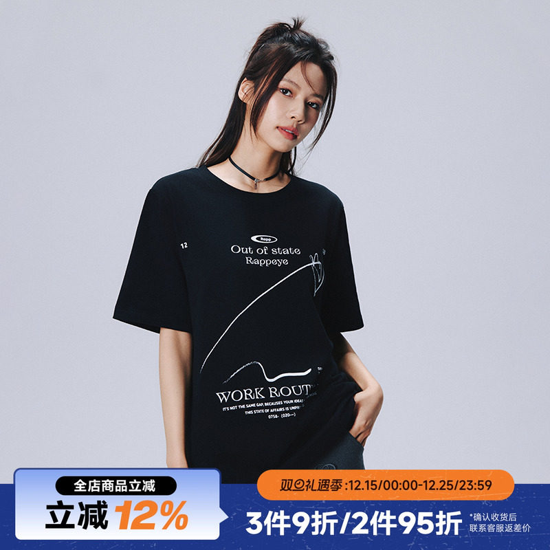 RAPPEYE 涂鸦字母短袖高街美式复古国潮印花宽松百搭情侣款T恤