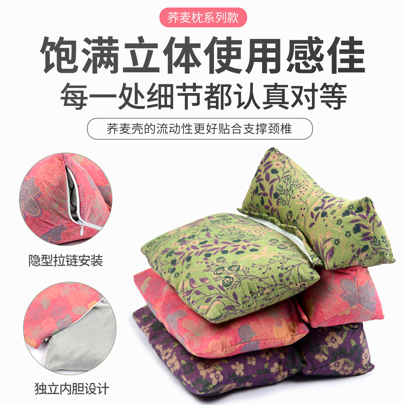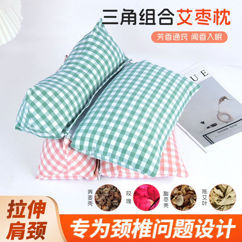 荞麦壳颈椎枕三角枕反弓牵引硬枕芯护颈专用电加热艾灸热敷枕头部