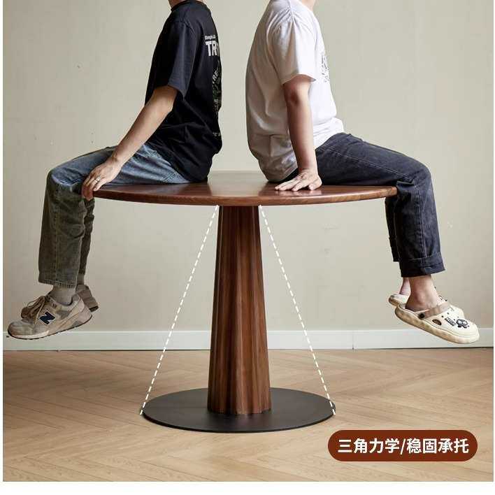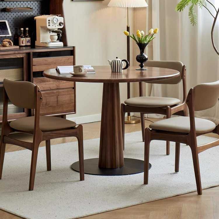 北欧实木圆形餐桌黑胡桃木圆桌北美简约休闲饭桌餐厅家具天尺圆桌