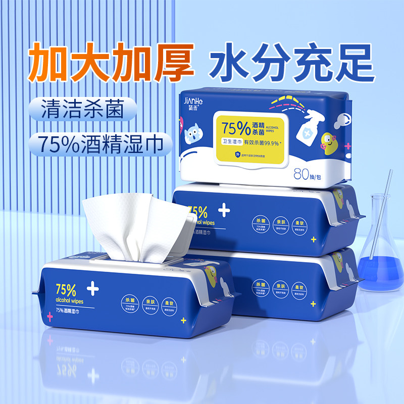 医用级75酒精80抽卫生加厚湿巾大包婴儿成人湿纸巾消毒杀菌擦手巾