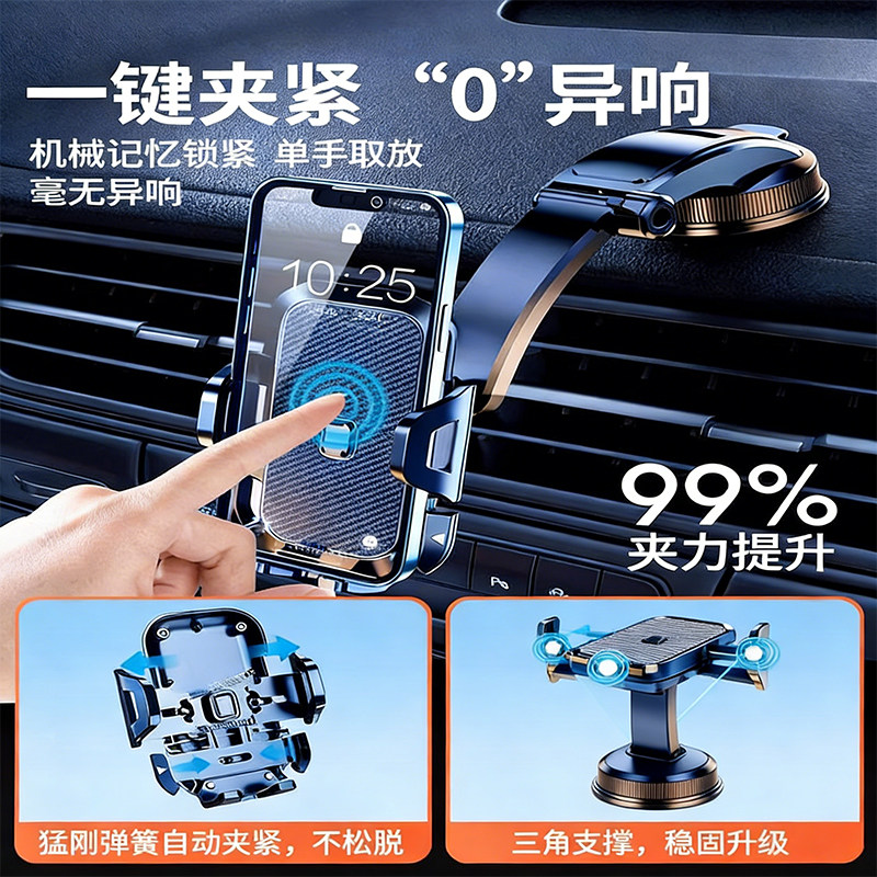2025新款吸盘式车载手机架卡扣重力支撑自动卡紧汽车导航专用支架