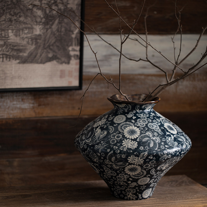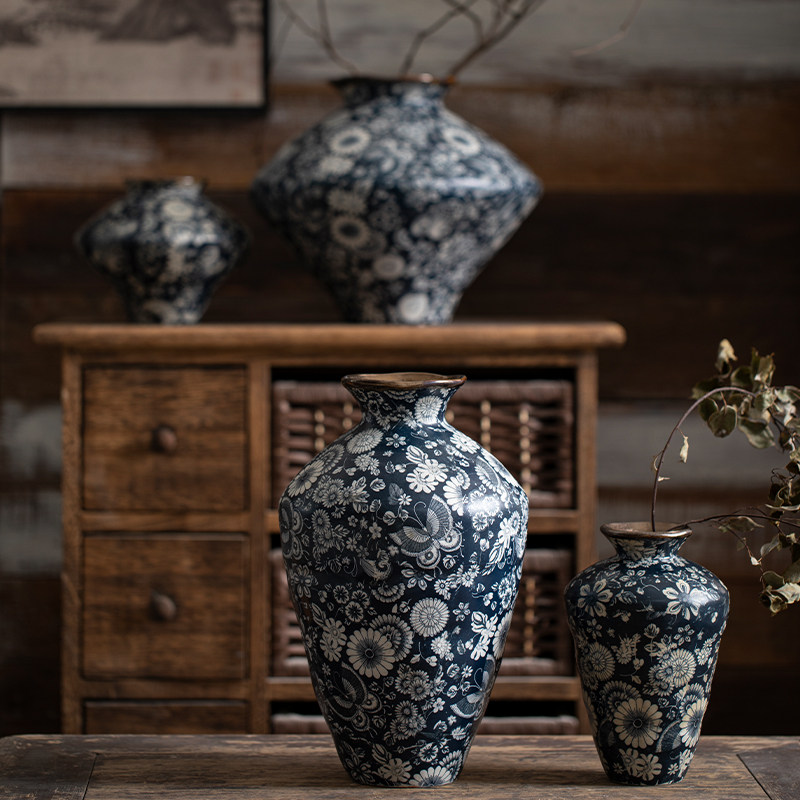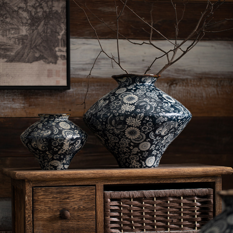 景德镇青花陶瓷花瓶新中式插花水培花器家居玄关复古装饰摆件客厅