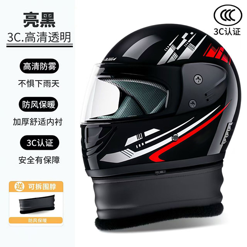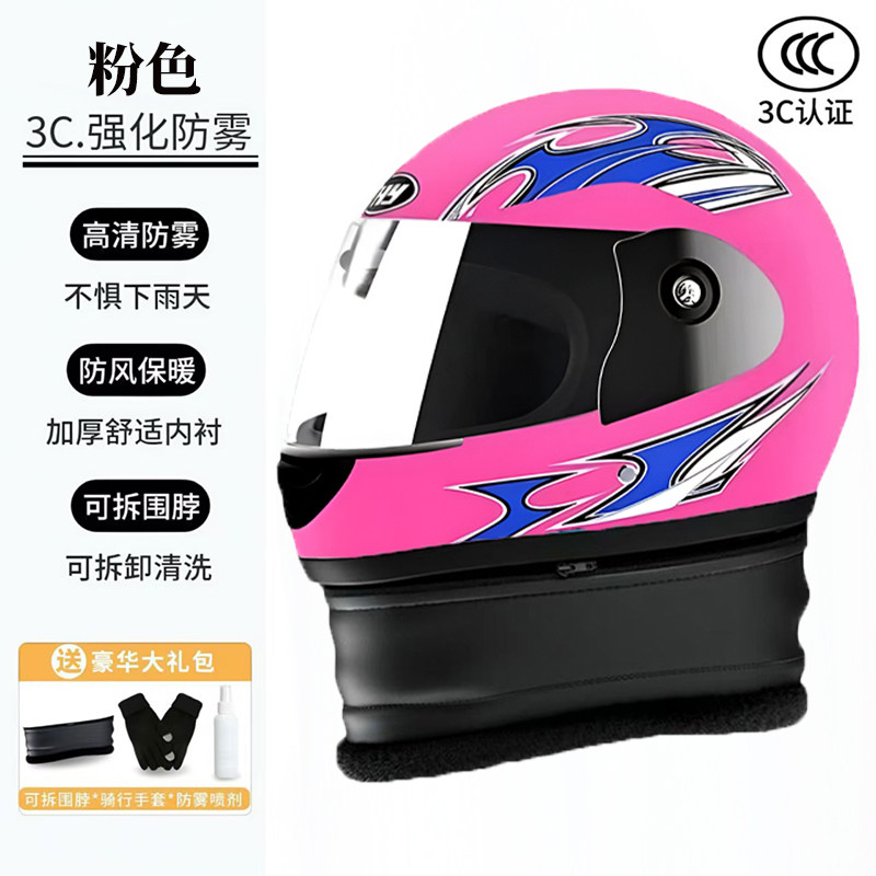 3C认证电动车冬季头盔男女秋冬季保暖护耳可拆围脖内推式镜安全帽