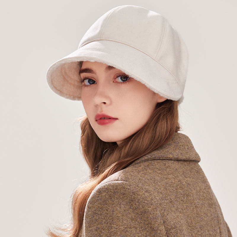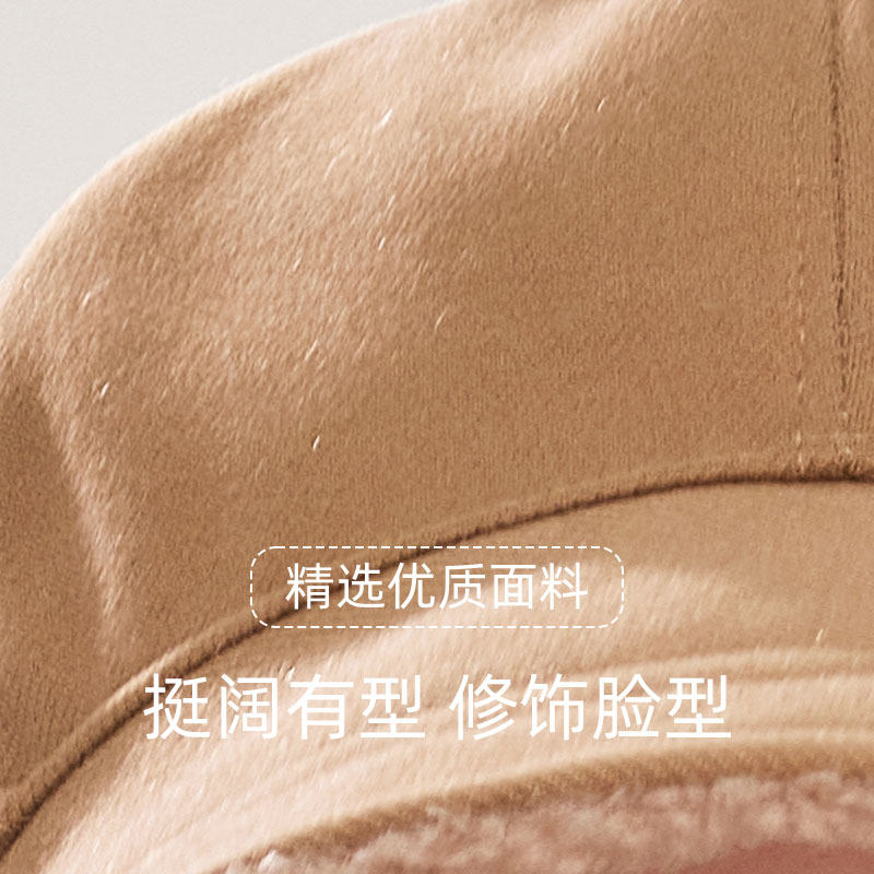 稻草人鸭舌帽大头适用显脸小女素颜冬渔夫帽加厚保暖羊羔毛渔夫帽