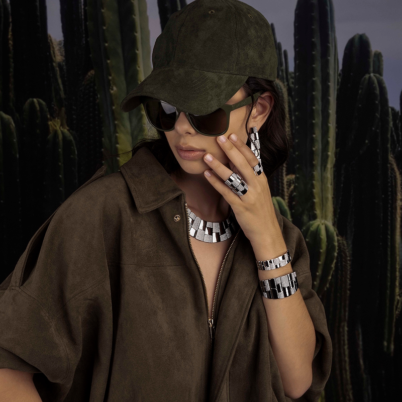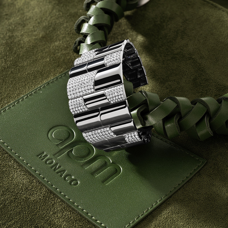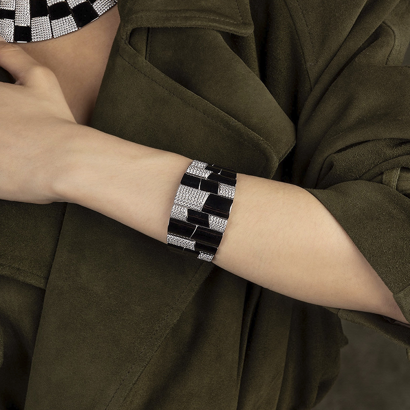 [杨紫同款]APM Monaco深灰色个性密镶手镯手饰宽版前卫生日礼物