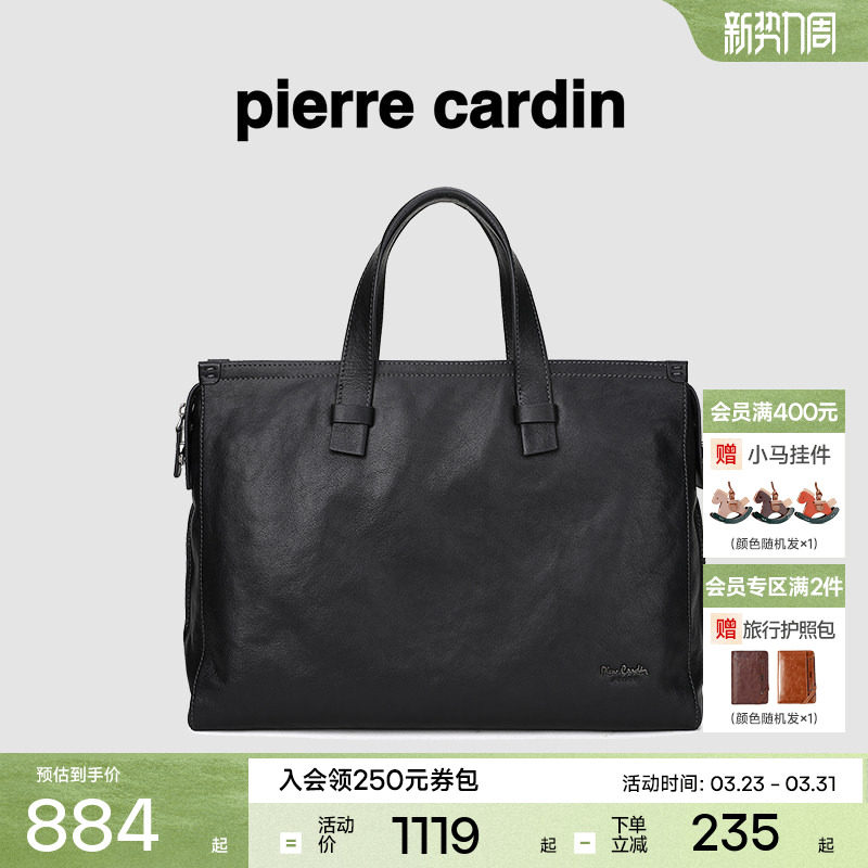 皮尔卡丹男士电脑公文包单肩斜挎包商务男式真皮大容量手提包男款
