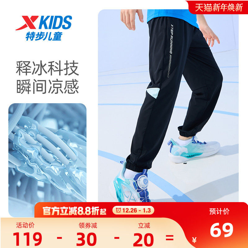 释冰2.0|特步童装男童速干裤夏季儿童薄款夏装冷感防蚊裤运动裤子