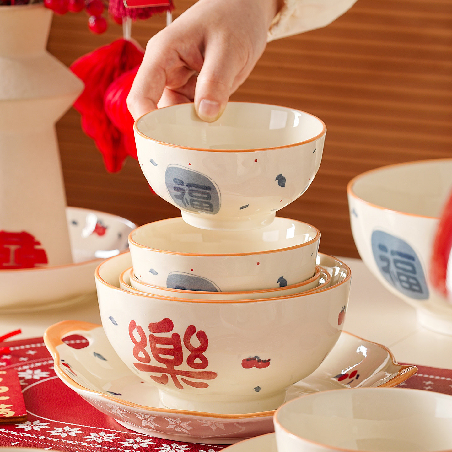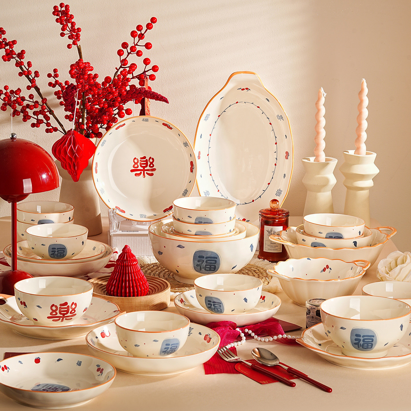 碗碟套装家用2026新款陶瓷碗筷喜庆中式釉下彩餐具新婚礼物送新娘