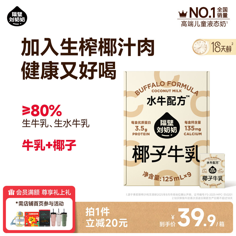 隔壁刘奶奶椰椰水牛纯牛奶mini椰子牛乳125ml*9盒儿童牛奶早餐奶