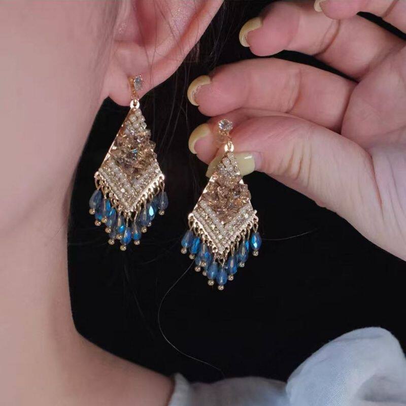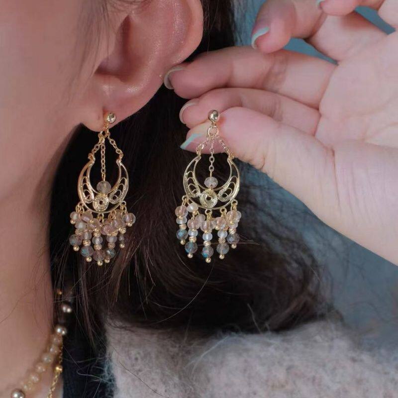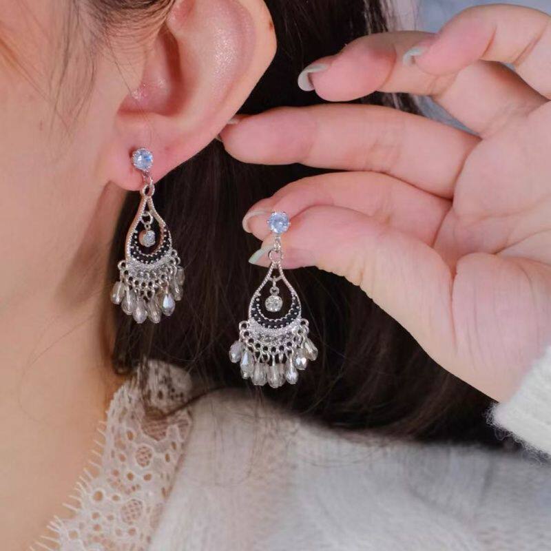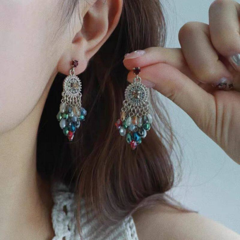 《游牧之歌》波西米亚民族风度假雕花流苏琉璃串珠耳环耳夹女