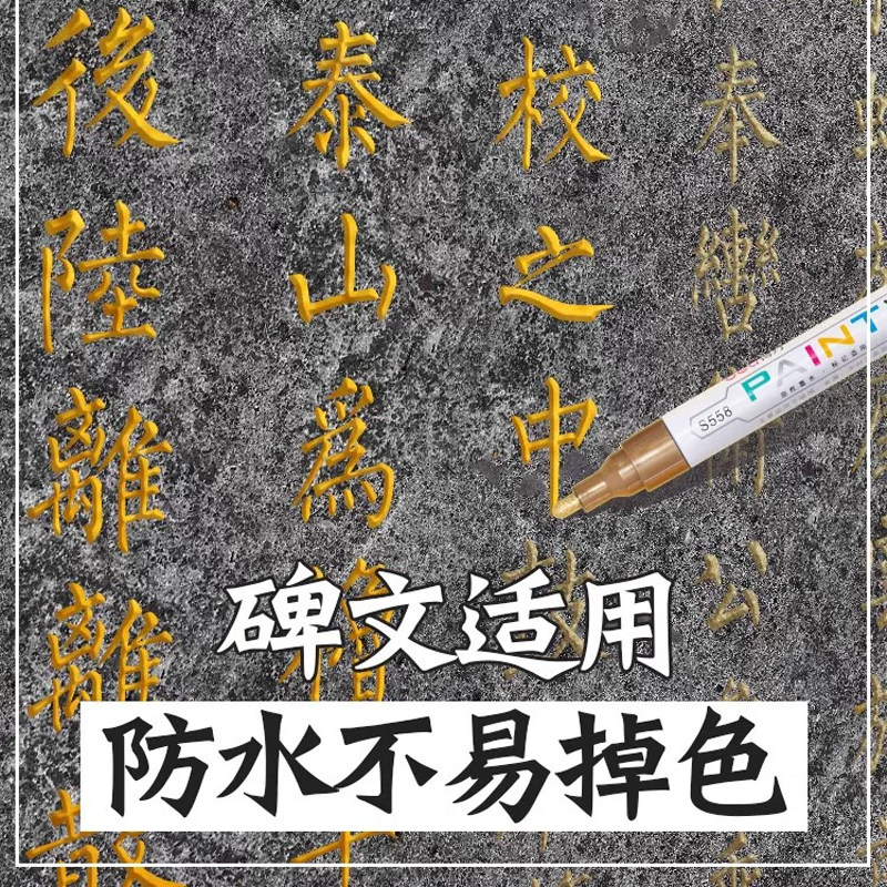 得力石碑油漆笔清明扫墓碑文补漆笔描字上色墓碑笔防水不掉色描碑记号笔描红描金黑墓碑辈文补色不褪色描碑笔