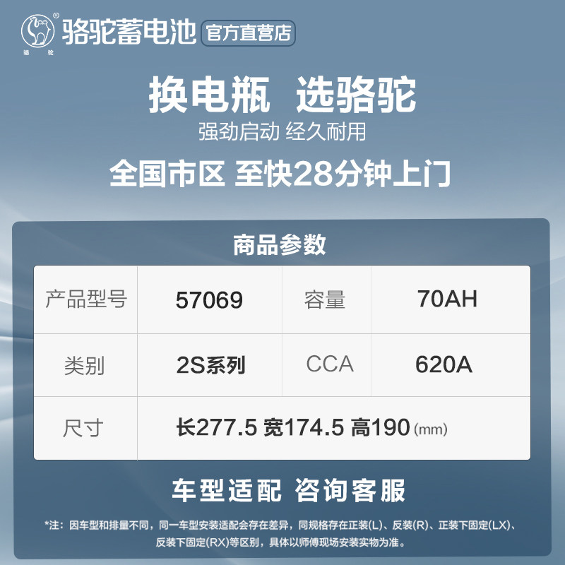 骆驼蓄电池汽车电瓶57069别克速腾迈腾新帕萨特奥迪A6君威12v70ah