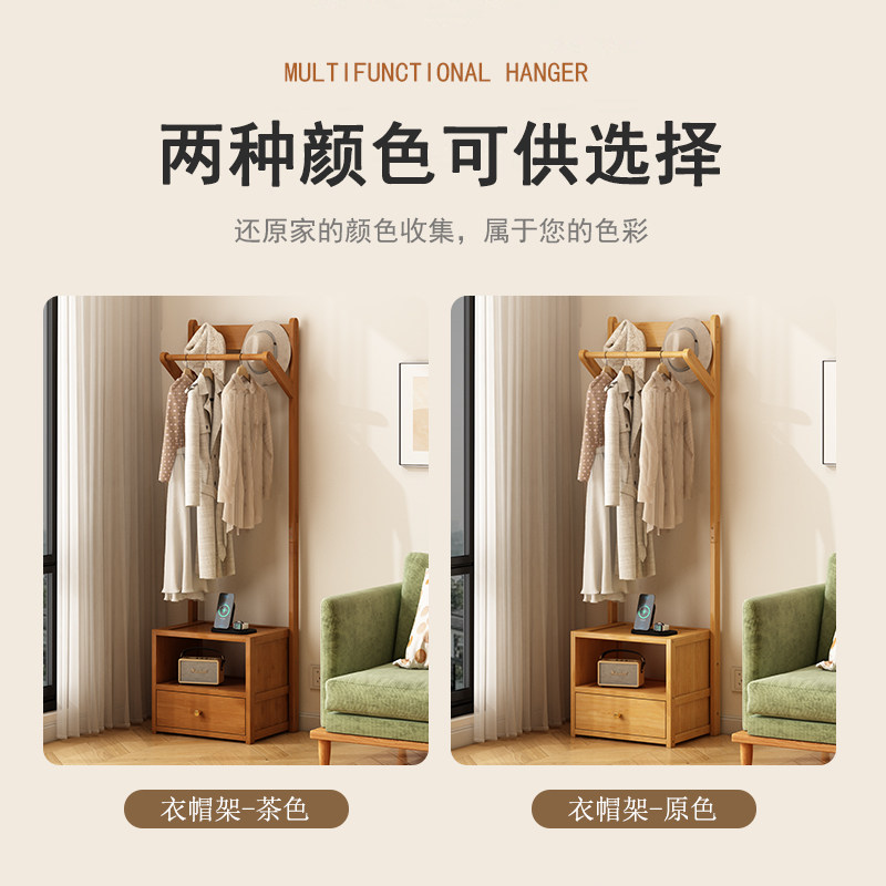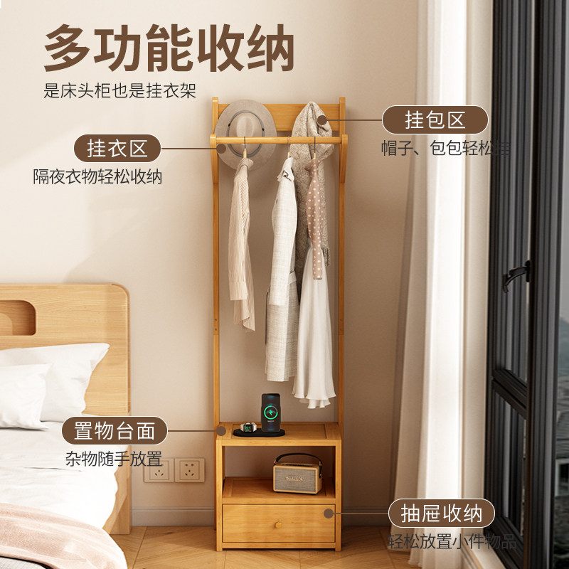 挂衣架床头柜一体实木衣架落地卧室家用床边衣服挂架置物架衣帽架