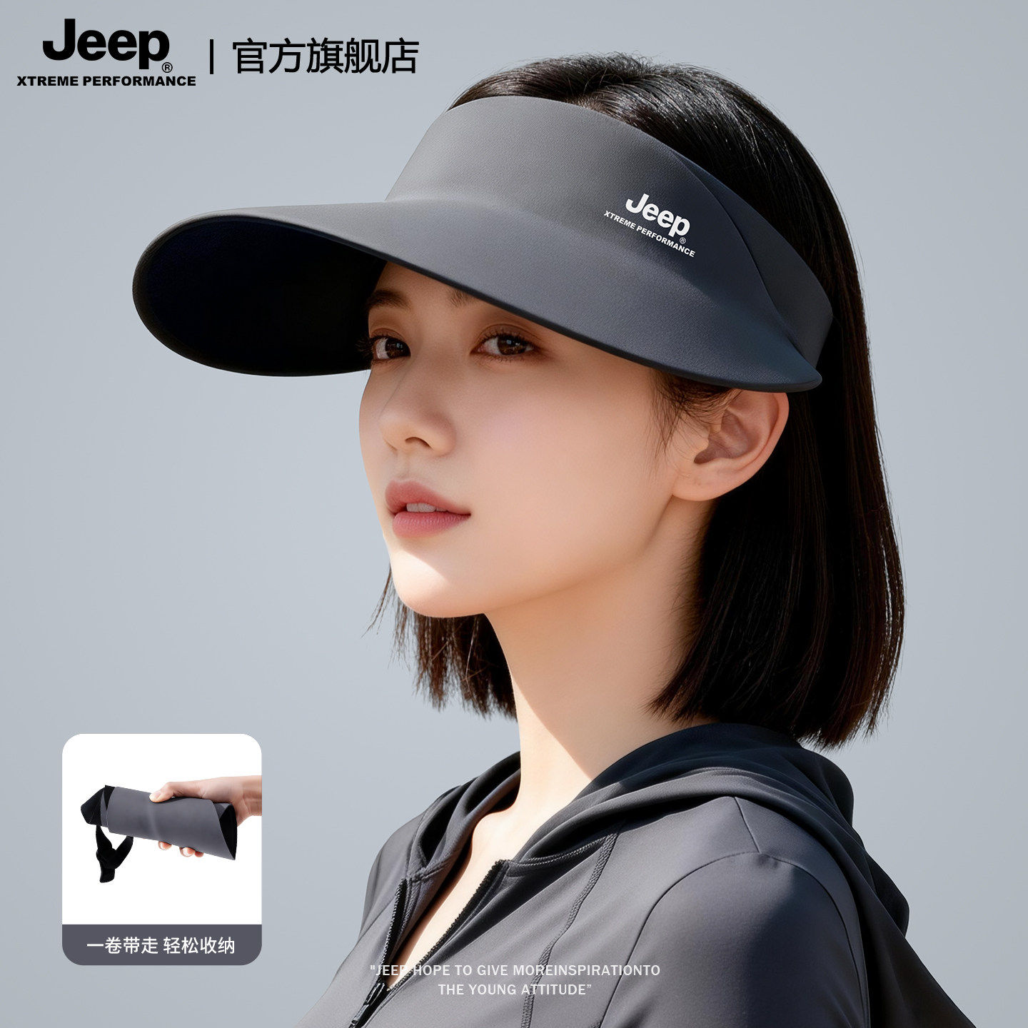 jeep吉普夏季女士空顶帽户外防紫外线遮阳透气薄电动车防晒帽子女