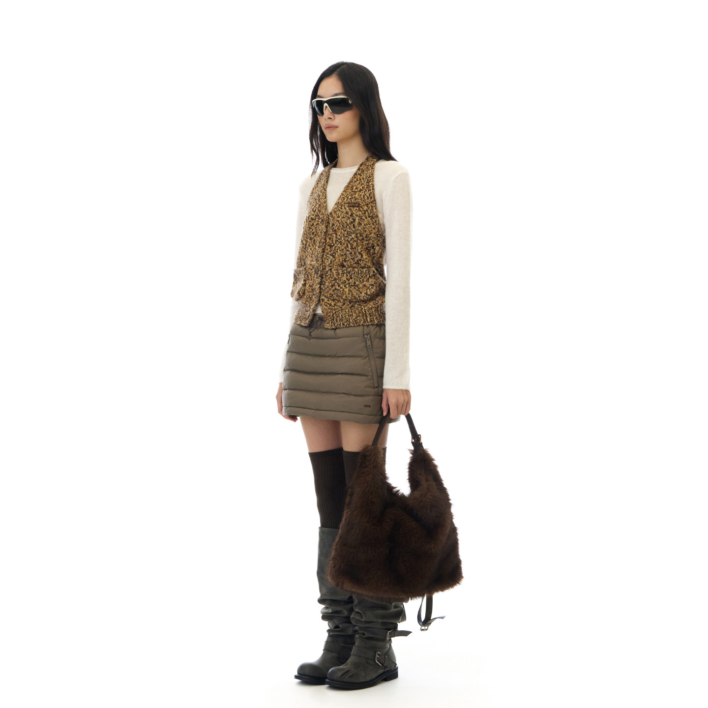 COCOBELLA花纱毛衣女秋冬灰色上衣休闲长绒针织衫外套MZ3218