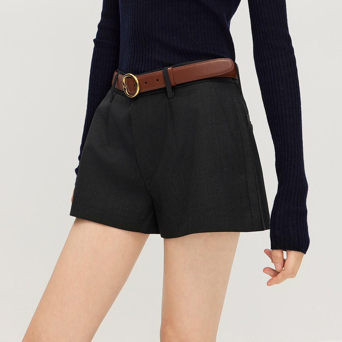 奚梦瑶同款OCHIRLY欧时力 精纺低腰直筒西装短裤裤子女春装