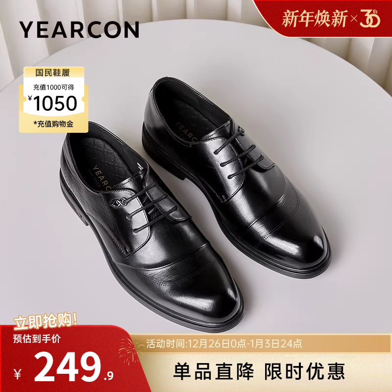 意尔康男鞋2025新款冬秋季真皮正装商务男士皮鞋结婚新郎加绒软底