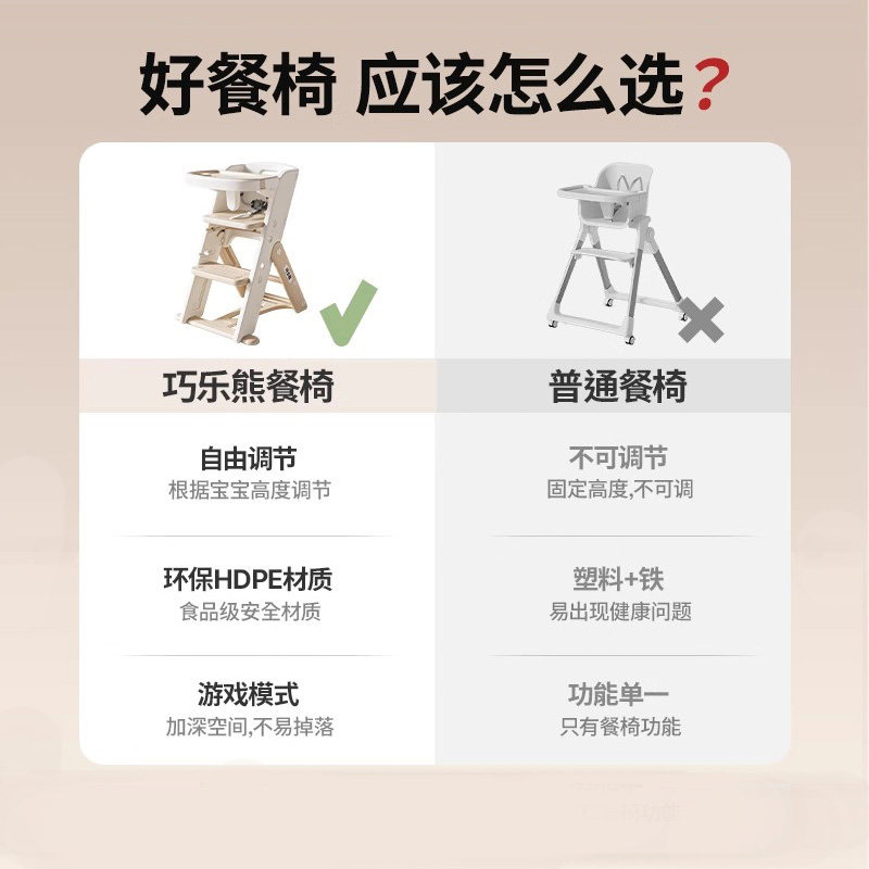 巧乐熊宝宝折叠餐椅儿童家用成长椅婴儿吃饭多功能高脚学习座椅子