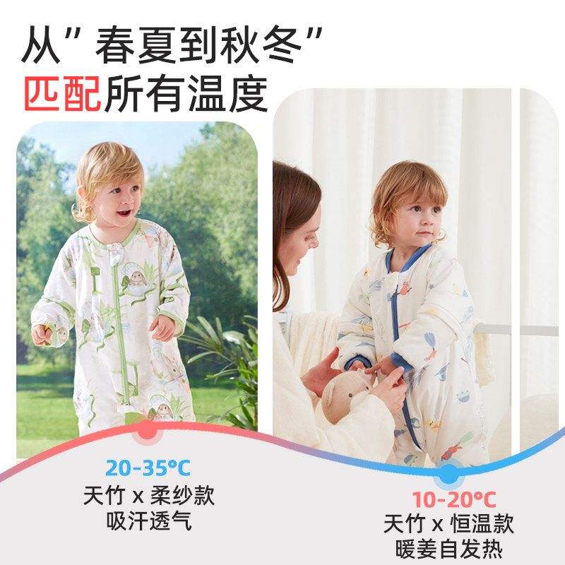 贝肽斯[肽柔]婴儿睡袋秋冬款儿童宝宝防踢被恒温分腿睡袋四季通用