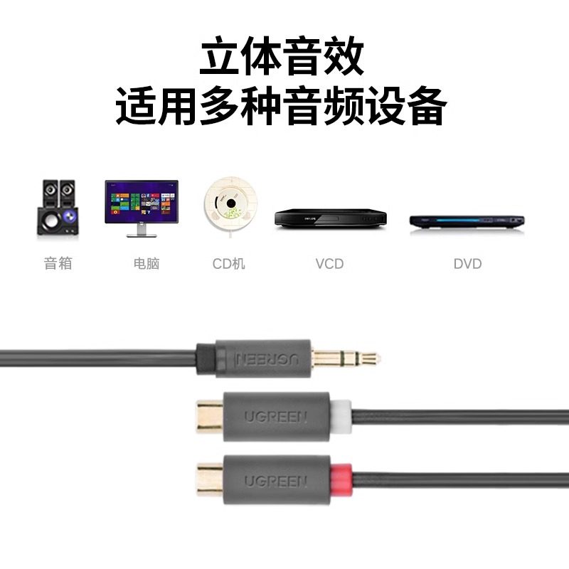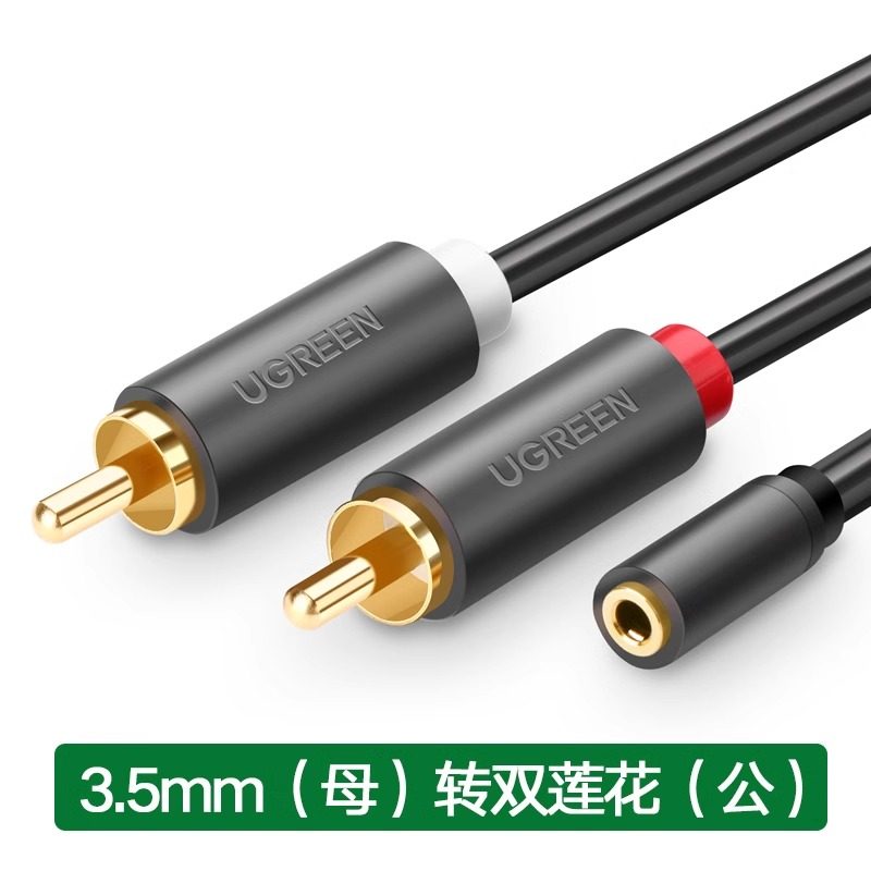 绿联音频线一分二音响连接线3.5mm转莲花母红白双头rca转接线1分2电脑电视机顶盒手机接音箱功放公对公一拖二