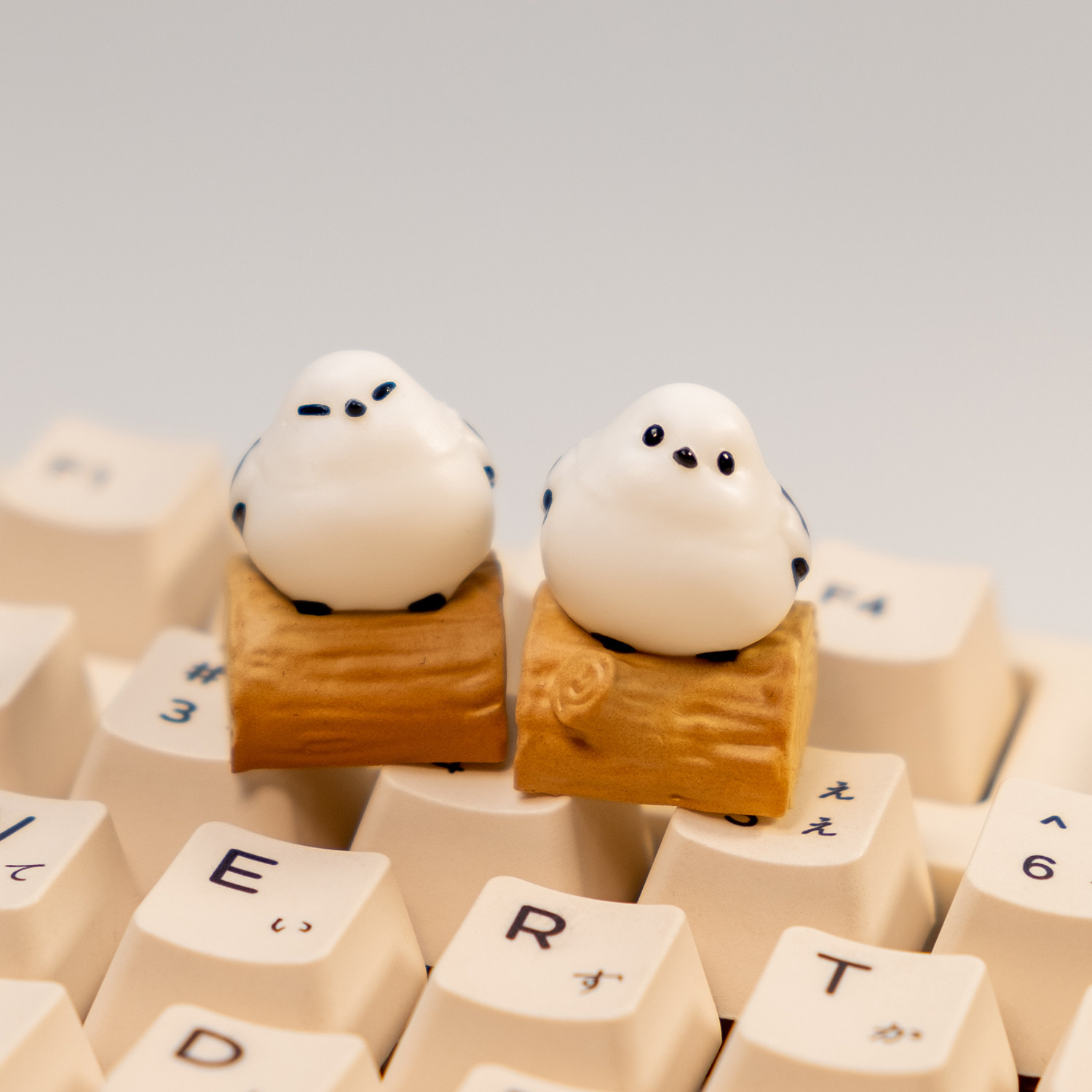 个性外设萌趣白色肥啾山雀鸟鹦鹉手工立体键帽创意客制化定制礼物