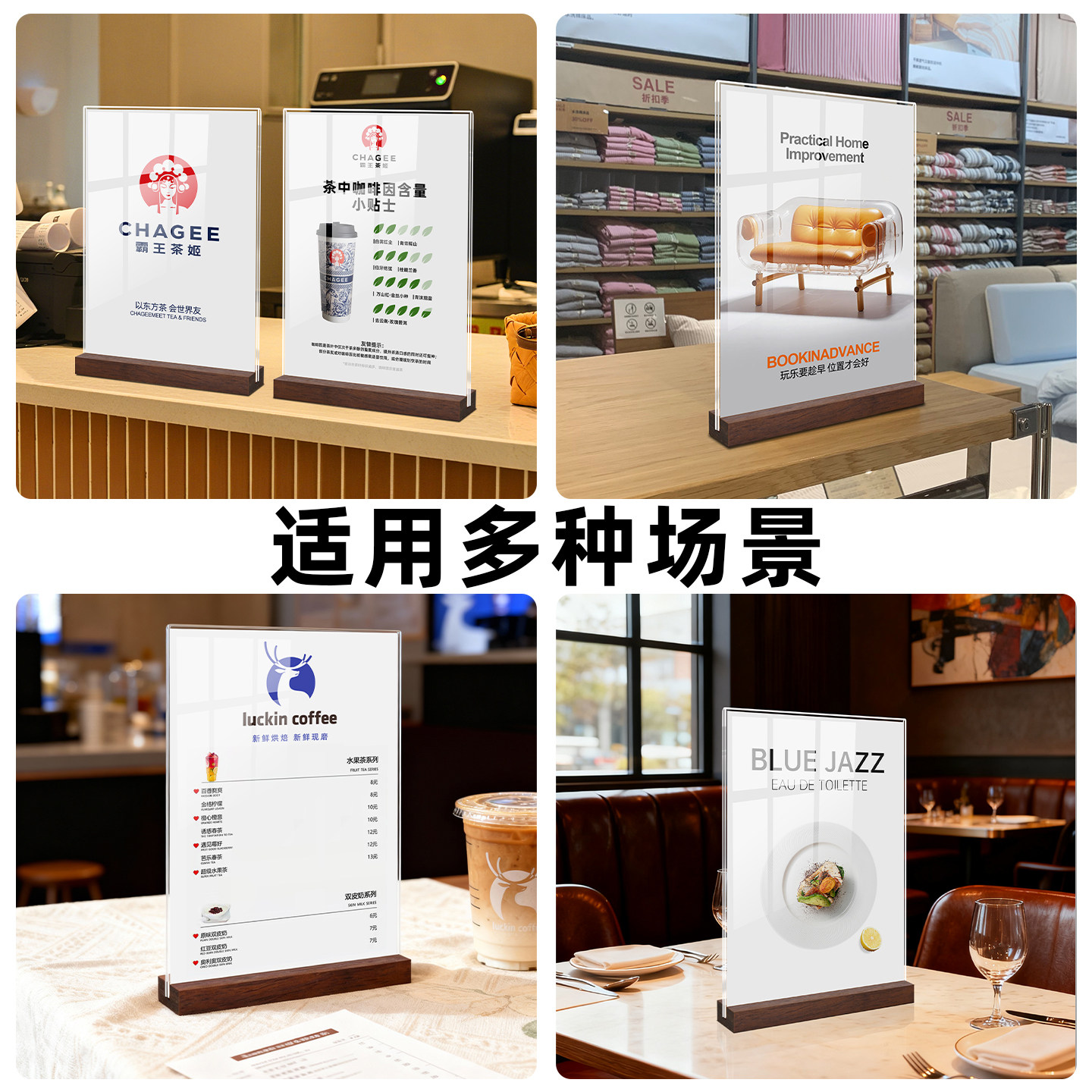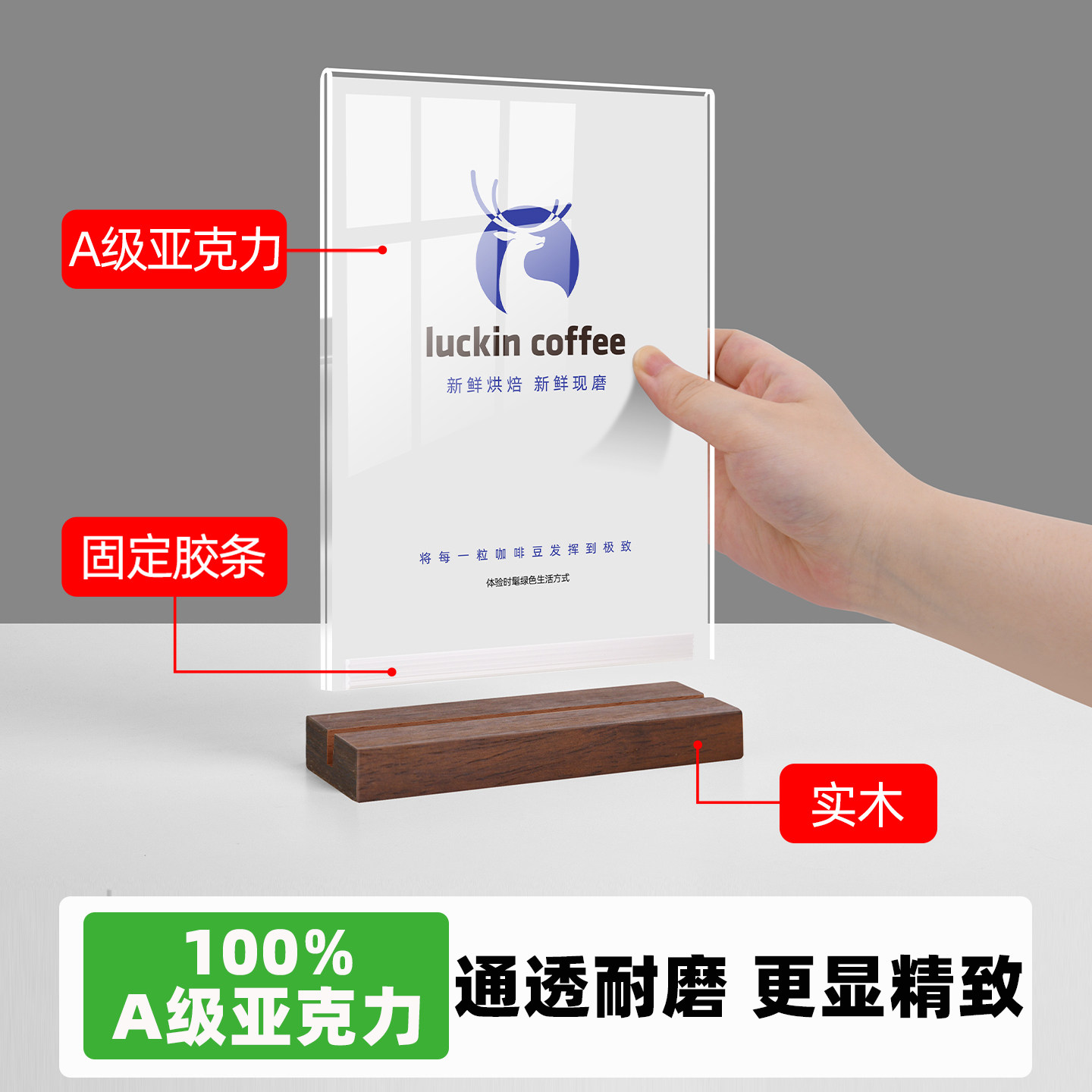 台卡亚克力展示牌a4桌面广告牌菜单立牌点餐价目表木质桌牌台面透明台牌实木台签奶茶店展示架定制吧台价格牌