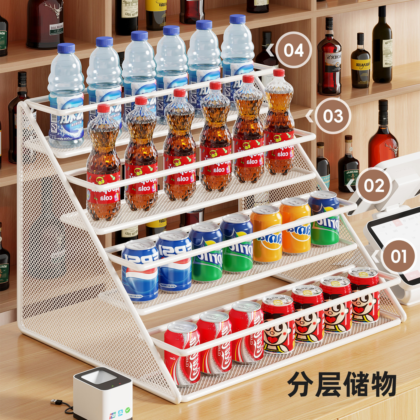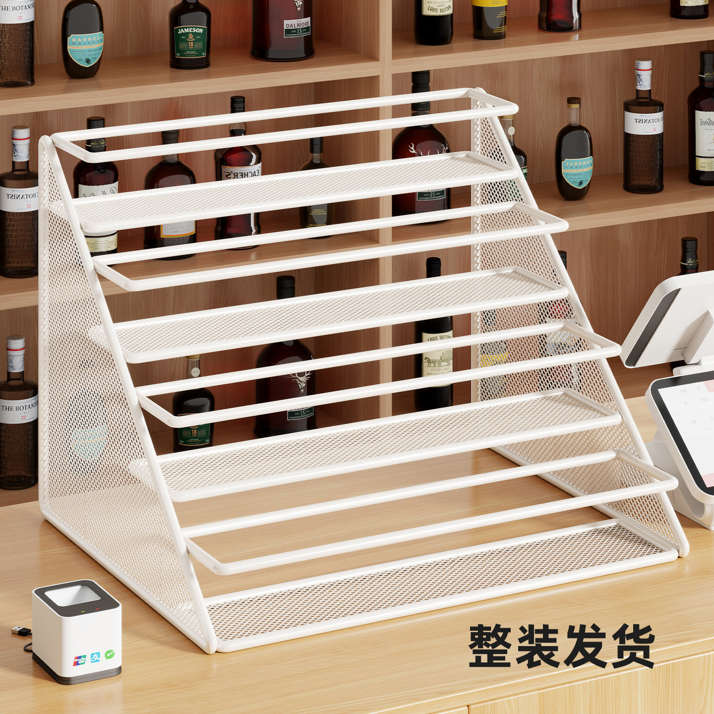 阶梯式铁艺饮料置物架收银台商品摆放展示架便利店柜台零食小货架