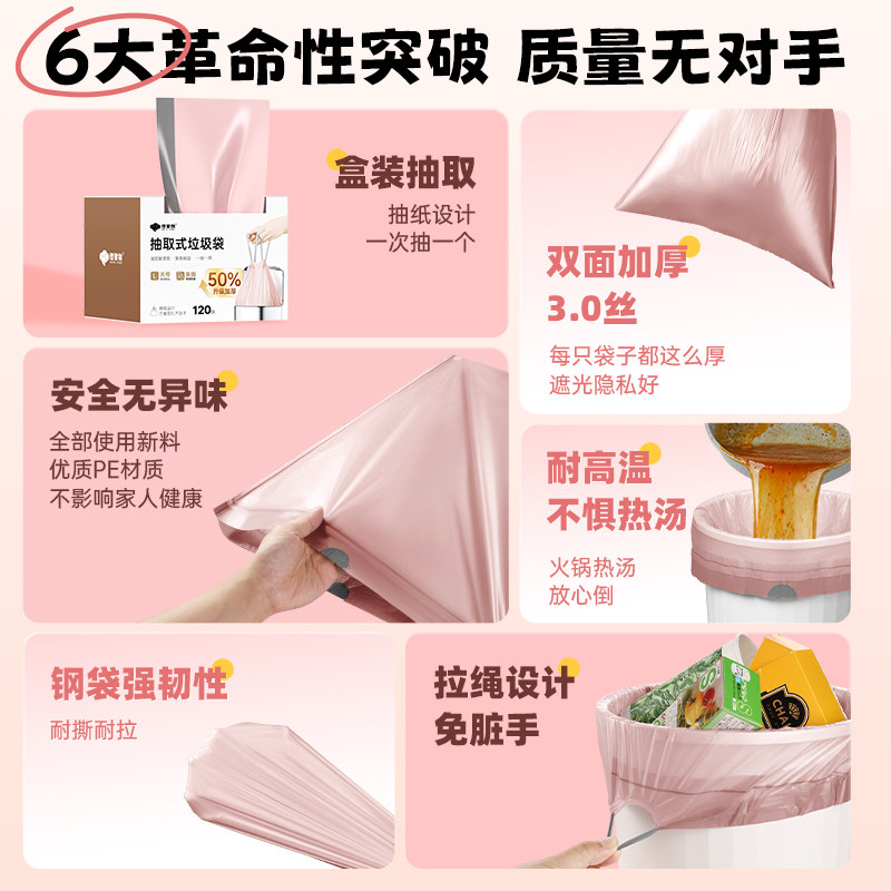 【李佳琦直播间】靓涤奶昔粉垃圾袋家用手提式加厚免撕背心300只