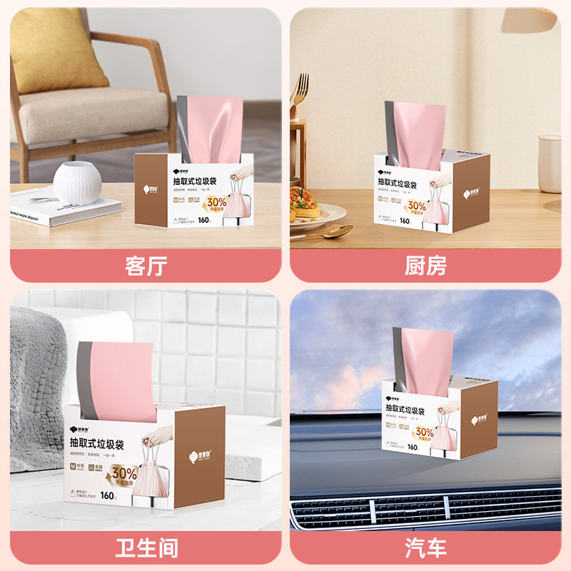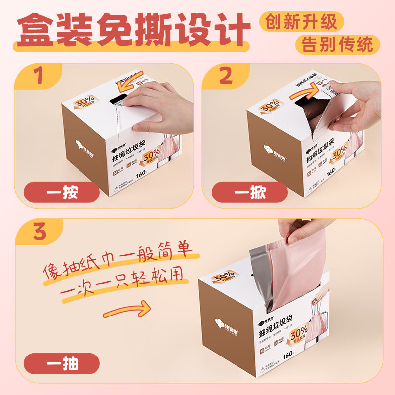 免撕抽绳抽取式垃圾袋家用加厚手提式大号厨房用盒装塑料袋超厚