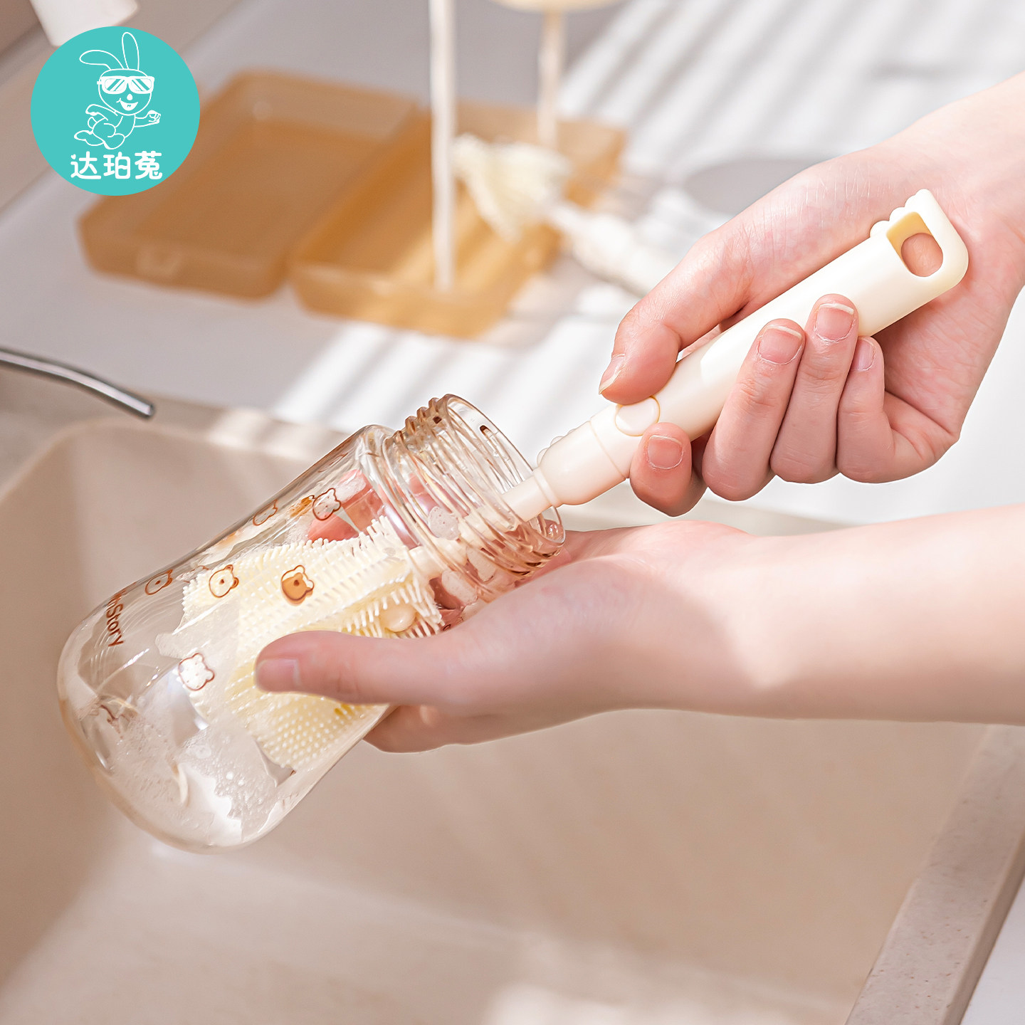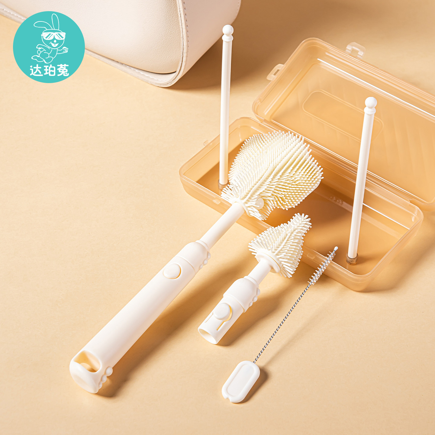 便携式奶瓶清洗刷婴儿专用刷宝宝奶瓶刷沥水架硅胶杯刷子晾干折叠