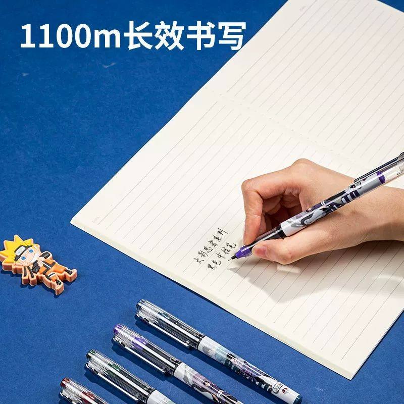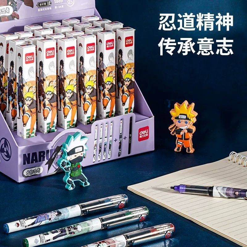 得力火影忍者盲盒中性笔大容量速干直液式走珠笔巨能写拔帽款s889
