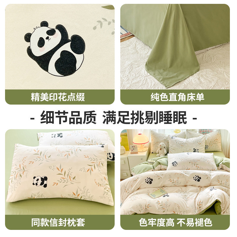 无印良品全棉四件套学生宿舍纯棉卡通儿童被套床单三件套床上用品