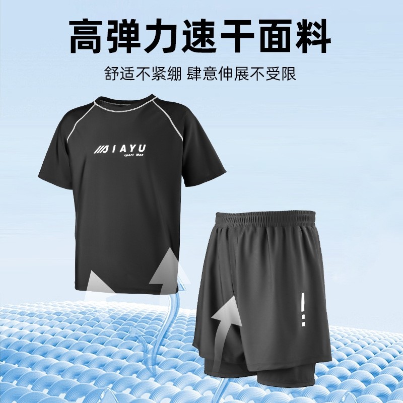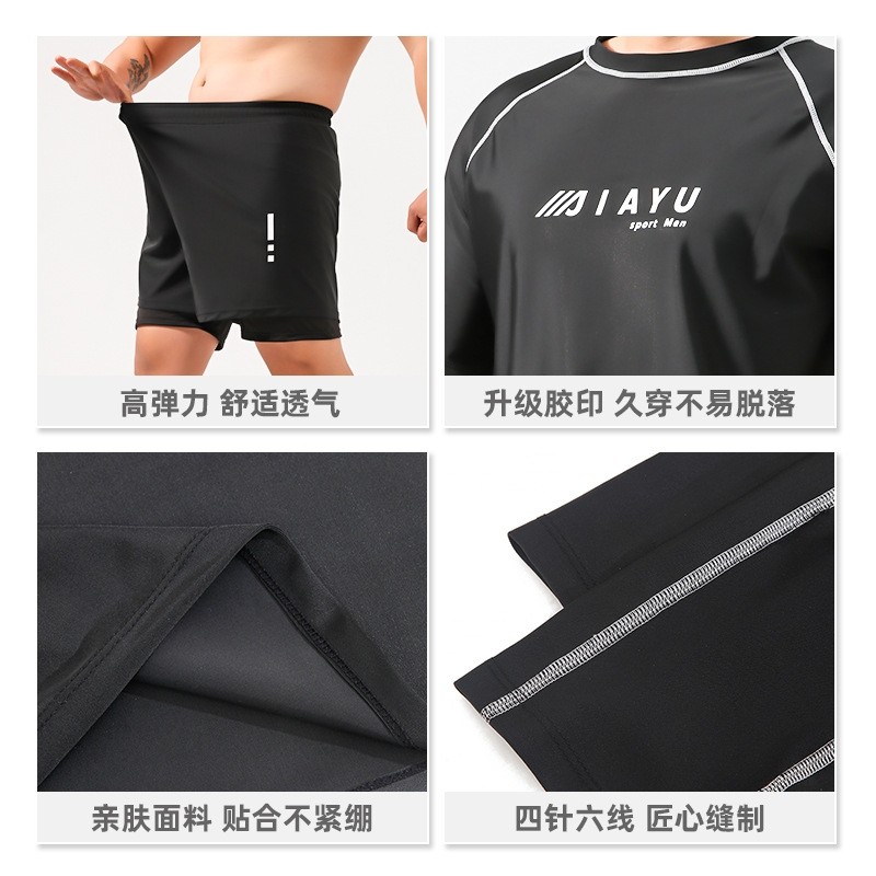 男士泳衣套装新款速干双层泳裤长袖防晒沙滩上衣成人全套游泳装备