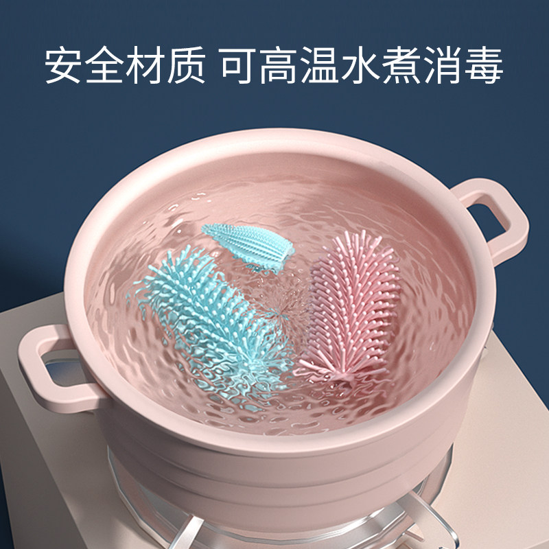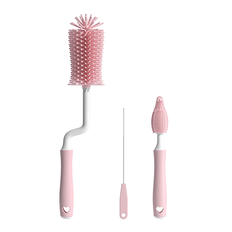 奶瓶刷子清洁套装硅胶海绵涮婴儿吸管刷360度旋转洗奶瓶工具初生