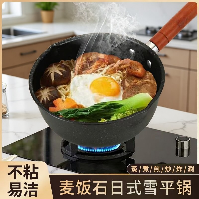 雪平锅宝宝辅食麦饭石不粘小奶锅一人用煮泡面小锅燃气灶适用汤锅