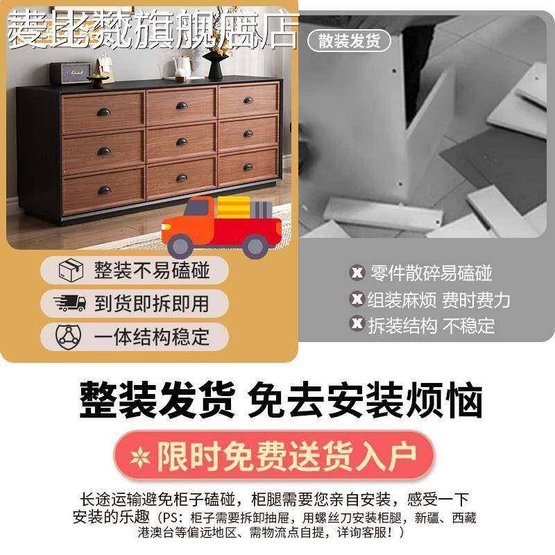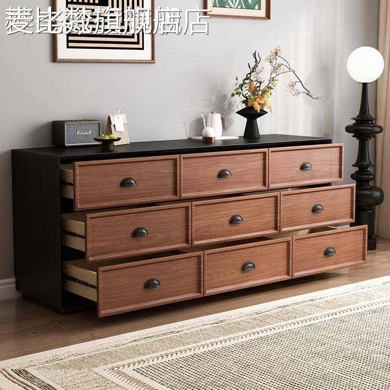 麦比梵中古风实木九斗柜卧室靠墙置物抽屉床尾储物柜胡桃色五斗柜收纳柜床笠拉车