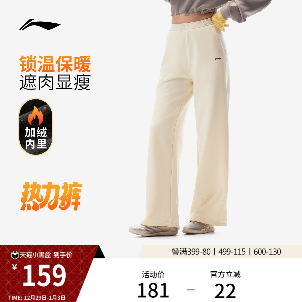 李宁奶芙裤 | 新款直筒阔腿裤女子休闲加绒裤子女显腿长运动卫裤