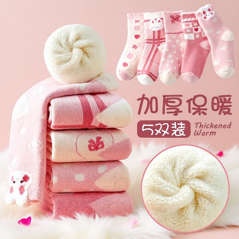 儿童袜子女童秋冬加绒加厚毛圈袜厚款冬季保暖女孩宝宝无骨中筒袜