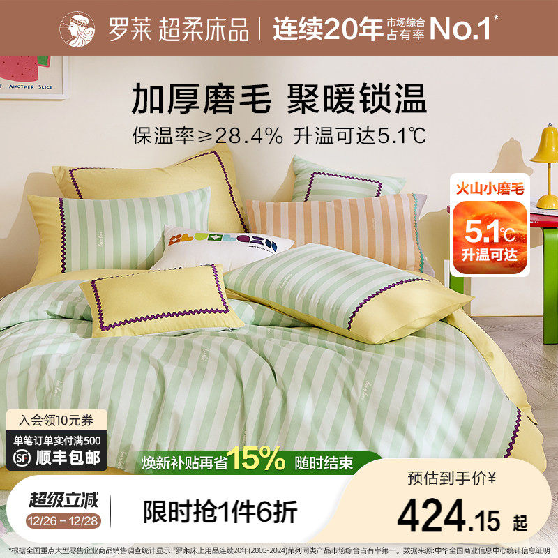 【断码清仓】罗莱家纺全棉磨毛四件套纯棉加厚保暖秋冬床单被套