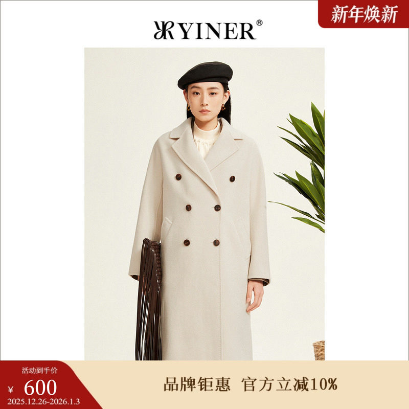 【100绵羊毛】YINER音儿专选女装冬季双面毛呢大衣双排扣外套