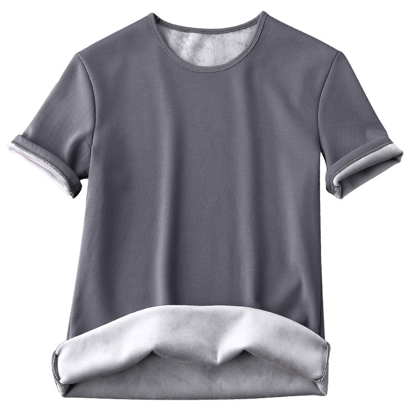 加绒加厚修身圆领短袖男T恤冬季保暖内搭半袖打底衫体恤上衣I白色