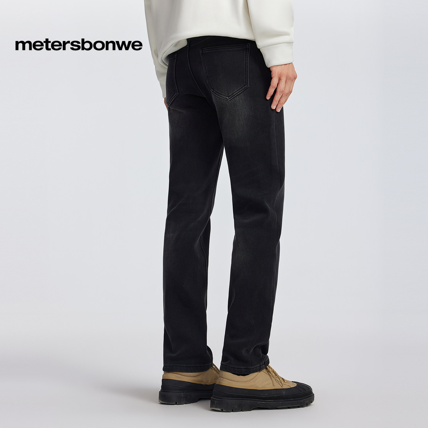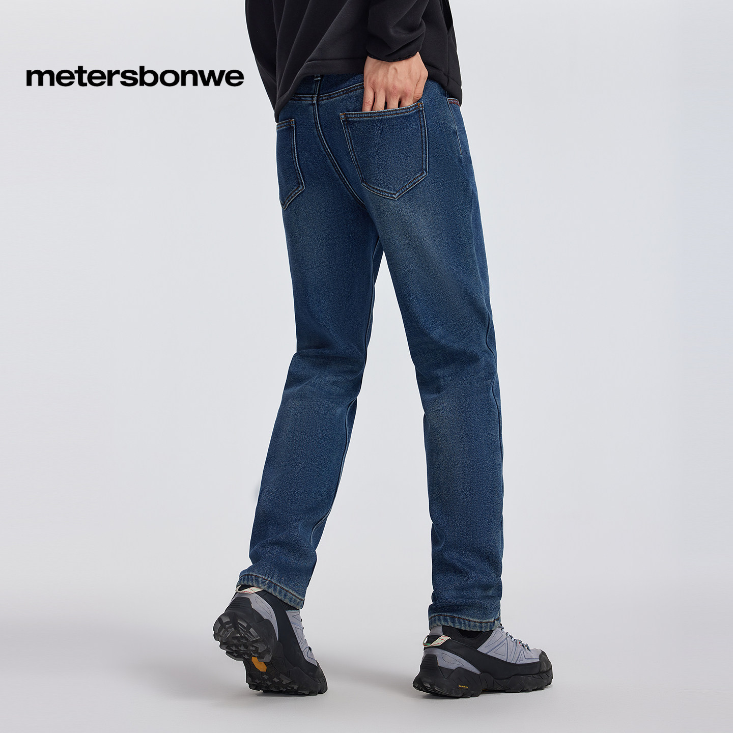 美特斯邦威牛仔裤男士春秋季新款口袋撞色绣线加绒保暖直筒裤长裤