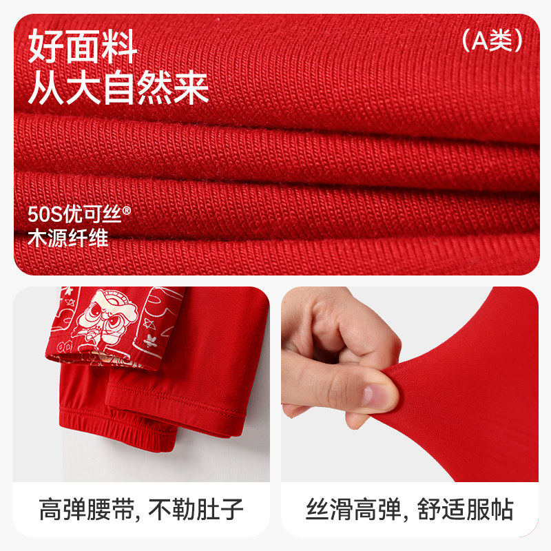久岁伴儿童本命年内裤男童大红内裤袜子组合秋冬蚕丝透气平角短裤