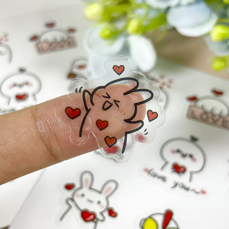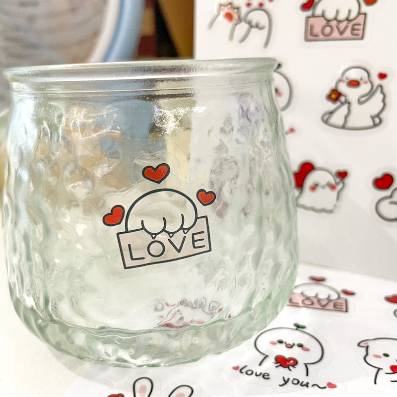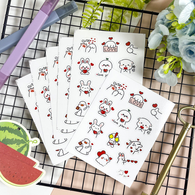 创意卡通比爱心透明不干胶贴纸自粘防水ins风幼儿园可爱手账素材水杯玻璃手机后壳相册装饰情侣diy奖励小贴画